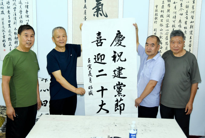 活動現(xiàn)場,老干部們揮毫潑墨,筆端行云流水,不一會兒就書寫出一幅幅書法作品。“慶祝建黨節(jié)喜迎二十大”“喜迎二十大永遠跟黨走奮進新征程”......每一幅作品都主題鮮明、飽含深情,凝聚著離退休老同志愛黨愛國的深厚情懷,展現(xiàn)了老同志老當(dāng)益壯、奉獻余熱、不忘初心跟黨走的良好風(fēng)貌。