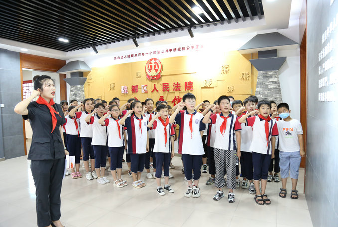 中新河南網(wǎng)7月11日電(梁靖 宋帆)為進一步增強未成年人法律意識,護航未成年人健康成長,讓廣大師生了解人民法院工作,近日,許昌市魏都區(qū)人民法院邀請來自新東街小學(xué)、魏都區(qū)實驗中學(xué)的150余名師生參加法院開放日活動,通過走進法院,零距離感觸陽光司法。