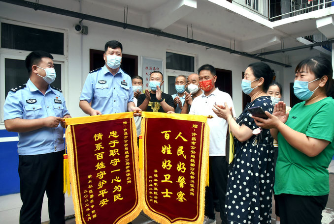 中新河南網(wǎng)7月29日(張培 曹秀軍)“我們是26號早上到派出所報案電動車電瓶被偷了,那天半夜我睡醒站在窗口,看見民警還在巡邏哩。天剛亮,就聽說蟊賊抓到了,追回來了好多電瓶。這暑熱連天的,民警真是辛苦啦……”7月29日一大早,十幾名群眾捧著兩面錦旗,來到許昌市公安局魏都分局新興派出所,向辦案民警表示感謝。