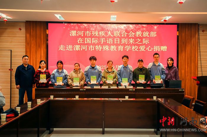 中新河南網(wǎng)9月25日電(任錢坤)2025年9月23日是國際手語日,在這一特殊日子里,河南省漯河市殘疾人聯(lián)合會走進(jìn)漯河市特殊教育學(xué)校,開展了一場意義非凡的捐贈活動,為聽障學(xué)生和聾人協(xié)會送去了溝通的“鑰匙”——80余本《國家通用手語--日常會話》教材,助力他們更好地融入社會,促進(jìn)手語知識普及。