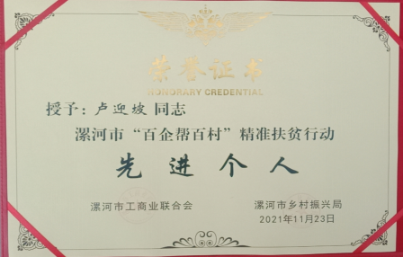 河南啟潤(rùn)集團(tuán)董事長(zhǎng)榮獲漯河市精準(zhǔn)扶貧行動(dòng)先進(jìn)個(gè)人榮譽(yù)稱(chēng)號(hào)