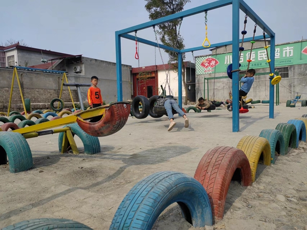 “記得最初這個(gè)角落是一塊空閑地,時(shí)間一長(zhǎng)總是雜草叢生,不僅難打理,而且非常影響村上的人居環(huán)境。”想出這個(gè)“金點(diǎn)子”創(chuàng)意的是該鎮(zhèn)任寨村第一書(shū)記劉歡歡,她高興地介紹道,“咱們村上開(kāi)大車(chē)的師傅多,聽(tīng)說(shuō)這個(gè)創(chuàng)意后,游樂(lè)場(chǎng)需要的廢舊輪胎一下子就湊齊了,考慮到下雨地面泥濘,村干部們又抽空安排了地面硬化,游樂(lè)場(chǎng)能這么快打造成功完全是干群齊心協(xié)力的成果。”