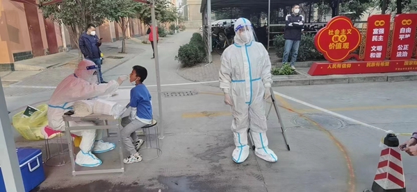 中新河南網訊(記者 胡夢瑤 通訊員 何偉)穿上防護服,要和同事去執(zhí)行抗疫工作,看到同事發(fā)到工作群里一張我與孩子揮手的照片,一個漢子的心瞬間破防,因為大家都身為父母,都這樣義無反顧。
