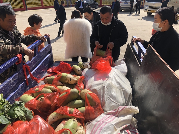 當(dāng)談起脫貧戶康秧家的情況時,駐村第一書記李文召把康秧家目前遇到的難題向大家做了詳細介紹。“康秧家地里的8萬多斤蘿卜因疫情面臨滯銷,很是發(fā)愁,希望借助大家的力量幫她家渡過難關(guān)。”李文召把康秧家的情況一說,在場的所有工作人員紛紛幫忙消費,一會兒功夫剛出土的600多斤水嫩生態(tài)蘿卜被購買一空。
