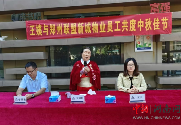 早飯后,從周圍趕來的150多名物業(yè)員工,身著節(jié)日的盛裝,在這里排列得整整齊齊。這時(shí)候,王媽媽和鄭州聯(lián)盟新城社區(qū)書記王云、河南建業(yè)鄭州城市公司總經(jīng)理李照勇,建業(yè)聯(lián)盟新城項(xiàng)目經(jīng)理劉志國等領(lǐng)導(dǎo)同志,來到主席臺(tái)上就座。