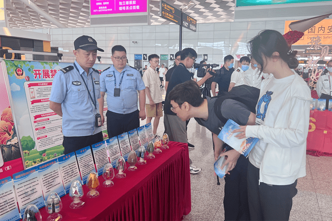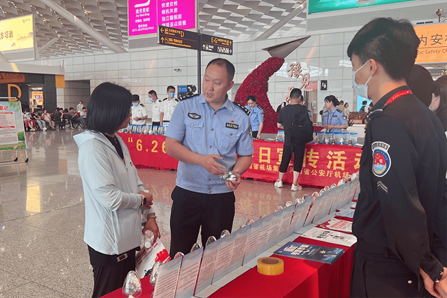 中新河南網(wǎng)(周密)為進一步抵制毒品侵害,增強廣大人民群眾對毒品危害性的認識和自我保護意識,6月26日,在第36個國際禁毒日到來之際,河南省公安廳機場公安局聯(lián)合河南省機場集團、鄭州出入境邊防檢查站、鄭州機場海關(guān)在鄭州機場T2航站樓開展了系列禁毒宣傳活動。