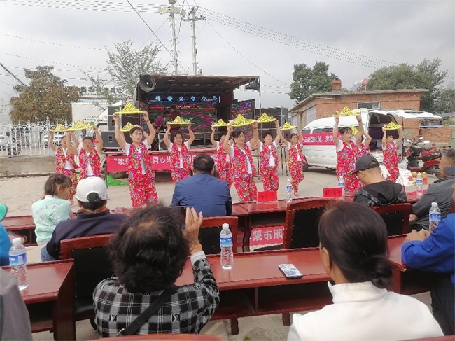 緊接著,文藝演出精彩紛呈,好戲連臺(tái)。一曲《美麗的朝陽(yáng)是我的家鄉(xiāng)》悠揚(yáng)響起,歌聲深情地表達(dá)了人們對(duì)家鄉(xiāng)的熱愛與依戀。隨后的戲曲風(fēng)采環(huán)節(jié),評(píng)劇《報(bào)花名》選段更是讓觀眾領(lǐng)略到了傳統(tǒng)藝術(shù)的魅力,那經(jīng)典的唱腔、傳神的表演,無(wú)不讓人沉醉其中。創(chuàng)意舞蹈《草帽舞》以新穎的形式和歡快的節(jié)奏,展現(xiàn)了農(nóng)民的勞動(dòng)生活與樂(lè)觀精神;而《風(fēng)雨彩虹鏗鏘玫瑰》的歌聲,則激勵(lì)著每一位觀眾勇敢面對(duì)生活中的挑戰(zhàn),永不言敗。此外,《我家在這里》、《快來(lái)東北嘮家!返雀枨B唱,更是用通俗易懂的語(yǔ)言,唱出了人們對(duì)家鄉(xiāng)的深厚情感和對(duì)生活的無(wú)限熱愛。活動(dòng)的高潮部分,當(dāng)屬?gòu)V場(chǎng)舞《幸福中國(guó)一起走》。隨著音樂(lè)的響起,居民們紛紛走上舞臺(tái),用整齊劃一的舞步,表達(dá)著對(duì)健康生活的追求和對(duì)幸福未來(lái)的憧憬。他們的笑容如花兒般綻放,傳遞著滿滿的正能量。