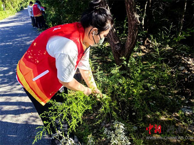 中新河南網(wǎng)(田波濤)朝陽市,這座歷史悠久的城市,以其獨(dú)特的自然風(fēng)光和人文景觀吸引著無數(shù)游客的目光。而在這座城市的東北部,鳳凰山景區(qū)以其秀美的山水和豐富的文化底蘊(yùn),更是成為了市民和游客休閑度假的首選之地。然而,隨著旅游業(yè)的蓬勃發(fā)展,景區(qū)的環(huán)境壓力也日益增大。為了保護(hù)這片美麗的土地,朝陽市聚和社會(huì)工作志愿服務(wù)中心直屬朝陽市啟航志愿服務(wù)隊(duì)決定采取行動(dòng),聯(lián)合舉辦一場(chǎng)意義非凡的景區(qū)凈草志愿活動(dòng)。