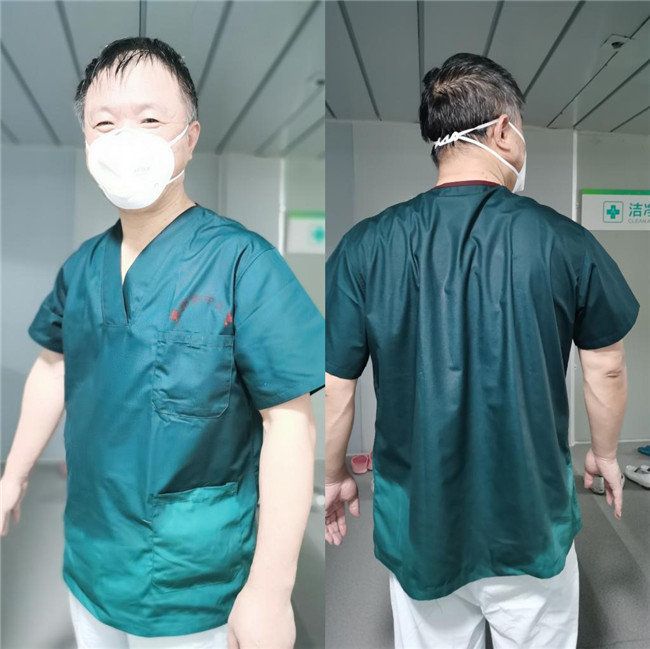 截止目前,連續(xù)三天的救治工作,余學慶主任他始終堅持戰(zhàn)斗在最危險的臨床第一線。每到下班時,穿在防護服的衣服輕輕一擰,就能流出大灘的汗水來。
