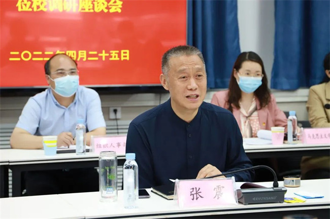 考察結(jié)束后,與會(huì)人員在課程與培訓(xùn)學(xué)院進(jìn)行了座談。學(xué)校黨委書記張震介紹了學(xué);厩闆r和特色辦學(xué)經(jīng)驗(yàn),詳細(xì)解讀了學(xué)校從“把企業(yè)引到學(xué)校”,到“把學(xué)校辦到企業(yè)”,再到“校企共建產(chǎn)業(yè)學(xué)院”,“線場(chǎng)模式”構(gòu)建校企命運(yùn)共同體,讓產(chǎn)教融合、校企合作落地生根的具體實(shí)踐。黨委副書記魯俊民從開(kāi)展“四全一促”工作、培養(yǎng)“紅匠人才”、有效開(kāi)展創(chuàng)新性黨建活動(dòng)等六個(gè)方面匯報(bào)了學(xué)校打造高質(zhì)量黨建的做法和成效。學(xué)校相關(guān)部門和二級(jí)學(xué)院負(fù)責(zé)同志分別發(fā)言。