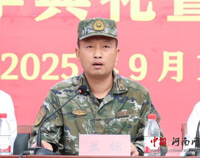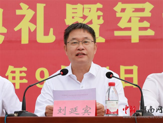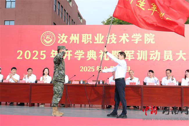汝州職業(yè)技術(shù)學(xué)院黨委書記翟會杰為軍訓(xùn)團授旗