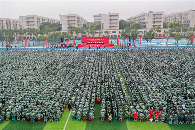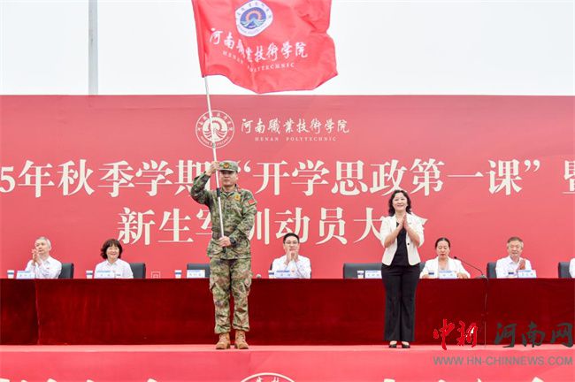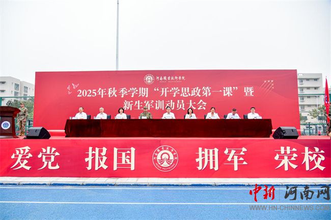 中新河南網(wǎng)9月16日電(胡艷) 秋色為序,征程新啟。9月15日早上,河南職業(yè)技術(shù)學(xué)院2025年秋季學(xué)期“開學(xué)思政第一課”暨新生軍訓(xùn)動員大會在田徑運(yùn)動場隆重舉行。校領(lǐng)導(dǎo)厲勵(lì)、夏新顏、肖瓏、李玉峰、盛興文、任楓軒、朱永寬及承訓(xùn)單位總教官張利南出席大會。學(xué)校各相關(guān)職能部門負(fù)責(zé)人,各二級學(xué)院黨總支書記、副書記,團(tuán)總支書記、新生輔導(dǎo)員,馬克思主義學(xué)院相關(guān)負(fù)責(zé)人、教師代表,2025級全體新生和全體承訓(xùn)教官共7600余人參加大會。校黨委副書記、工會主席田華主持大會。