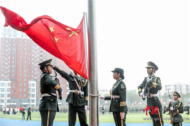 大會在莊嚴(yán)的升旗儀式中隆重開啟。全體師生肅立注目,齊聲高唱國歌,目送五星紅旗冉冉升起。激昂的旋律猶如催征的號角,響徹校園,滌蕩人心。