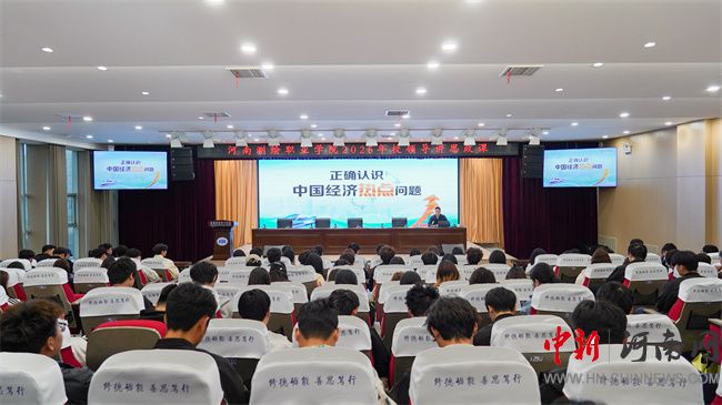 中新河南網(wǎng)9月26日電(文/劉春應(yīng) 圖/茹奕瑞) 為全面落實立德樹人根本任務(wù),充分發(fā)揮學(xué)校領(lǐng)導(dǎo)干部在思想政治教育主渠道中的引領(lǐng)示范作用,9月23日下午,河南測繪職業(yè)學(xué)院紀(jì)委書記郭書克在多功能報告廳以《正確認(rèn)識中國經(jīng)濟熱點問題》為題,為經(jīng)濟管理學(xué)院、體育學(xué)院師生講授專題思政課。