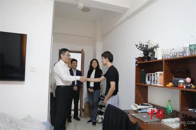 在健行樓8樓,厲勵一行看望了留校的留學生。他走進留學生宿舍,與留學生們親切交流,詢問他們的假期生活安排、飲食起居情況,以及是否有需要學校協(xié)調解決的困難。得知留學生們都喜歡中國傳統(tǒng)文化、喜歡中國飲食時,厲勵欣慰地表示:“學校是你們在中國的‘家’,假期里也要讓你們感受到家的溫暖。”他向陪伴留學生的值班老師致謝:“感謝你們用心照顧留學生的生活,搭建起文化溝通的橋梁。”針對留學生管理工作,他叮囑相關部門工作人員,外事無小事,一定要管理好、服務好、保障好留學生的學習和生活,持續(xù)關注他們的思想動態(tài)和生活需求,豐富假期文化活動,幫助他們更好地融入校園、了解中國,同時做好他們的安全宣傳教育,確保度過一個充實又安全的假期。