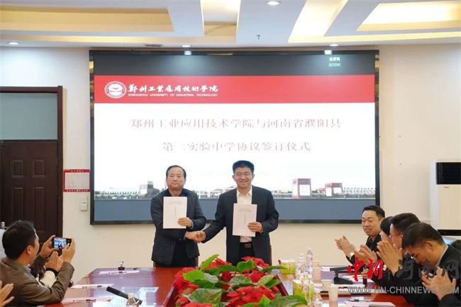 中新河南網(wǎng)10月17日電 10月16日,鄭州工業(yè)應(yīng)用技術(shù)學(xué)院與河南省濮陽縣第二實驗中學(xué)生源基地協(xié)議簽訂儀式在行政管理中心二樓會議室舉行。此次簽約,不僅是鄭工學(xué)院發(fā)展史上開啟教育新篇章的重要征程,更是通過與基礎(chǔ)教育領(lǐng)域優(yōu)質(zhì)學(xué)校的深度融合,將共建生源基地轉(zhuǎn)化為推動校地教育協(xié)同的具體實踐。濮陽縣第二實驗中學(xué)教育集團董事長蔡玉坤,校長張克來、副校長段盈武等班子成員及師生代表;中原華信控股集團總裁、鄭州工業(yè)應(yīng)用技術(shù)學(xué)院理事長谷建光,校長閆兵攜班子成員、有關(guān)部門負責(zé)人參加簽訂儀式。簽訂儀式由鄭州工業(yè)應(yīng)用技術(shù)學(xué)院副校長賈圣強主持。