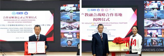 中新河南網(wǎng)10月23日電 10月22日,新鄉(xiāng)職業(yè)技術(shù)學(xué)院與中策橡膠集團(tuán)印尼子公司、印度尼西亞三寶壟國立理工學(xué)院以線上線下結(jié)合方式,隆重舉行“產(chǎn)教融合戰(zhàn)略合作基地”揭牌儀式。此次揭牌標(biāo)志著三方在推動(dòng)“產(chǎn)教融合、校企合作、職教出海”方面邁出實(shí)質(zhì)性步伐,是學(xué)校服務(wù)國家“一帶一路”倡議、助力中資企業(yè)海外發(fā)展的又一重要舉措。