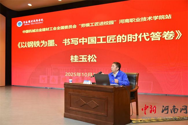 中新河南網(wǎng)10月24日電(王俊嶺) 10月21日下午,河南職業(yè)技術(shù)學(xué)院在音樂廳舉行“勞模工匠進(jìn)校園”暨“匠心大講堂”報(bào)告會(huì)。全國勞動(dòng)模范、中國一重集團(tuán)有限公司重型裝備事業(yè)部桂玉松,全國勞動(dòng)模范、方大特鋼科技股份有限公司甘榮剛應(yīng)邀作專題報(bào)告。中國機(jī)械冶金建材工會(huì)副主席張杰、冶金工作部部長王欣,有色金屬工業(yè)人才中心主任助理趙麗霞,河南省機(jī)械冶金建材工會(huì)主席呂慶,河南省教科文衛(wèi)體工會(huì)二級(jí)調(diào)研員李陶營;校黨委副書記、工會(huì)主席田華,校黨委委員、副校長朱永寬,學(xué)校相關(guān)單位師生代表參加報(bào)告會(huì)。
