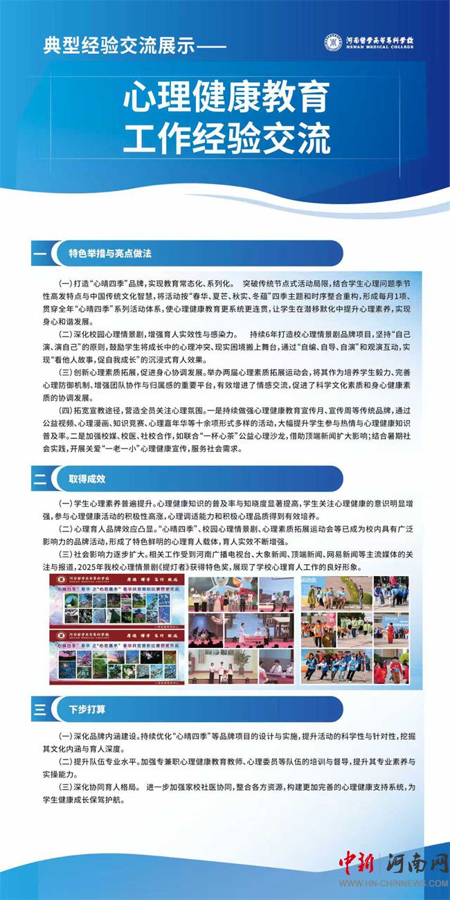 系列舉措取得了扎實(shí)成效。目前,學(xué)生心理素養(yǎng)普遍提升,主動(dòng)關(guān)注心理健康的意識(shí)顯著增強(qiáng);“心晴四季”、心理情景劇等心理育人品牌效應(yīng)凸顯,形成了特色鮮明的育人載體;相關(guān)工作獲河南廣播電視臺(tái)等主流媒體多次報(bào)道,心理情景劇《提燈者》榮獲特色獎(jiǎng),社會(huì)影響力逐步擴(kuò)大。