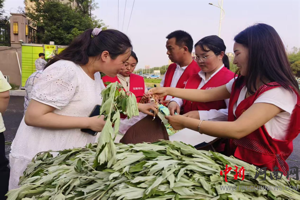 開封市示范區(qū)杏花營農(nóng)場海西社區(qū)開展“端午傳情艾香暖心” 艾草香包、五彩繩發(fā)放活動