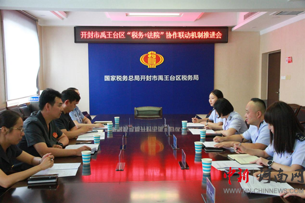 中新河南網8月15日電:為進一步深化司法與稅務的協作配合,持續(xù)優(yōu)化營商環(huán)境,防范強制執(zhí)行環(huán)節(jié)稅費流失,開封市禹王臺區(qū)人民法院與國家稅務總局開封市禹王臺區(qū)稅務局召開“稅務+法院”協作聯動機制推進會。區(qū)法院與區(qū)稅務局相關負責同志參加會議。