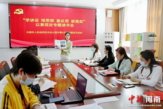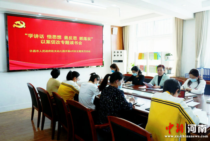 中新河南網4月21日電(張培 趙若含)4月20日,許昌市人民政府機關幼兒園開展2022年4月份主題黨日活動,舉行以案促改專題讀書會,分享交流、反思提升,并重點學習《習近平關于防范風險挑戰(zhàn)、應對突發(fā)事件論述摘編》,深化“以案促改”,提升黨員風險防范意識和能力。